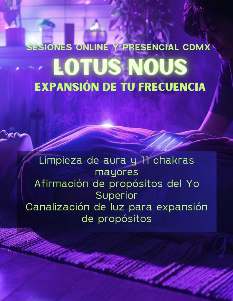 Lotus Nous es una técnica de sanación donde procuramos la alquimia de tus heridas a través de la limpieza de tu aura y de tus 11 chakras mayores, después se canaliza luz específica a cada uno de ellos, dependiendo de la información que hayan mostrado.