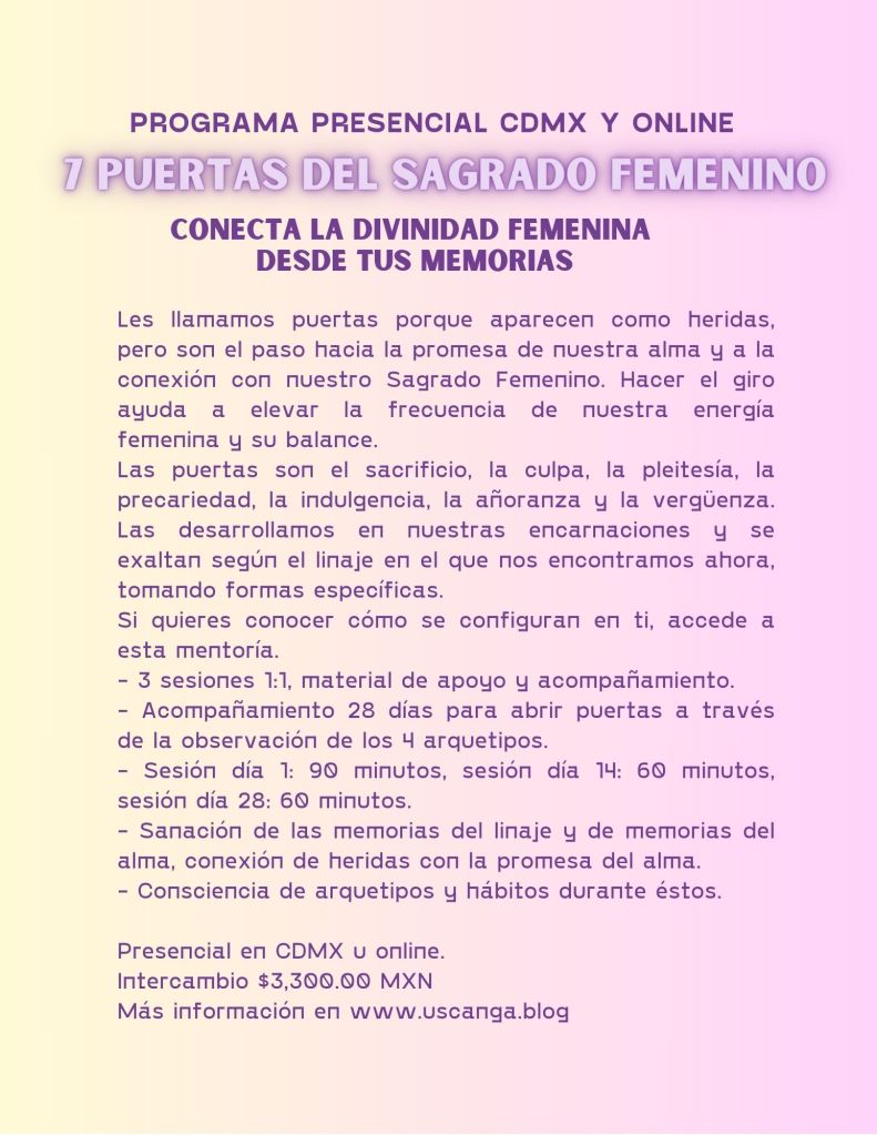 Les llamamos puertas porque aparecen como heridas, pero son el paso hacia la promesa de nuestra alma y a la conexión con nuestro Sagrado Femenino. Hacer el giro ayuda a elevar la frecuencia de nuestra energía femenina y su balance.